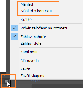 Z nabídky možností v pravém horním rohu panelu časové osy vyberte možnost Náhled.