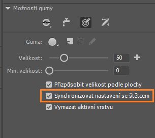 - V nástroji Guma (E) zaškrtněte políčko Nastavení synchronizace se štětcem.