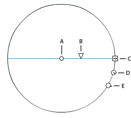 A. Středový bod B. Šířka C. Natočení D. Velikost E. Ohniskový bod.