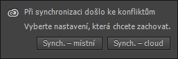 Při změně předvoleb bez synchronizace se službou Creative Cloud ale může dojít ke konfliktu. Další informace o řešení takových konfliktů najdete v části Řešení konfliktů synchronizace.