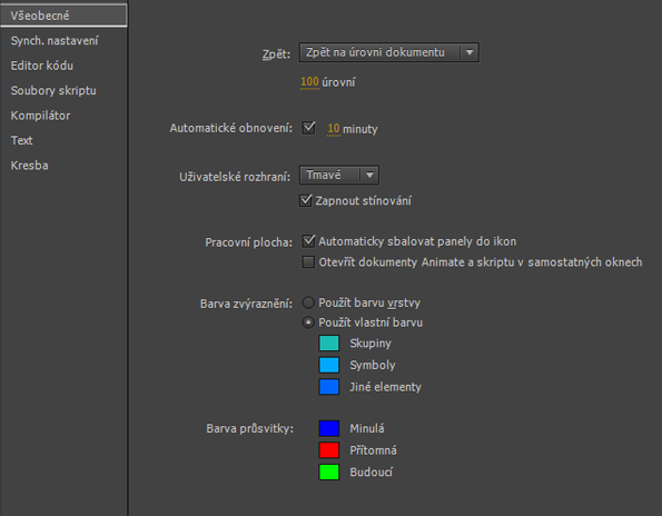 Předvolby aplikace Animate lze synchronizovat ve dvou systémech. To znamená, že lze předvolby na počítači změnit, tyto upravené předvolby synchronizovat se službou Creative Cloud a poté je stáhnout do jiného počítače.