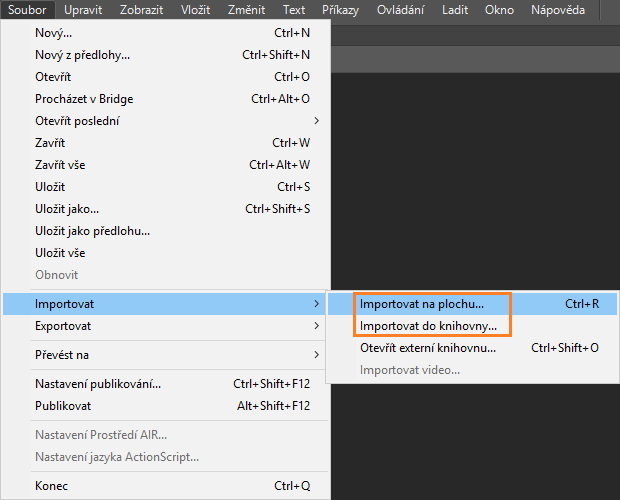 Zvukové soubory vložíte do aplikace Animate buď tak, že je importujete do knihovny, nebo je importujete přímo na plochu.