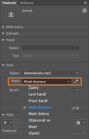 V části Vlastnosti > Zvuk vyberte v seznamu Efekt požadovanou možnost.