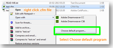 Pravým tlačítkem klikněte na soubor aplikace ColdFusion a vyberte možnost Otevřít v aplikaci > Jiná.