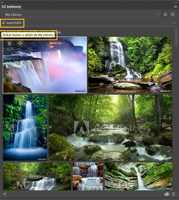 Na panelu CC knihovny proveďte jeden z následujících úkonů: