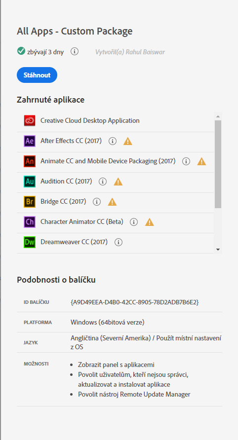 Pokud budou společností Adobe vydány aktualizace kterékoli aplikace v balíčku, balíček přestane být aktuální.