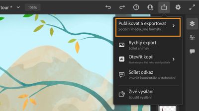 3. V nabídce Sdílet klepněte na možnost Publikovat a exportovat.