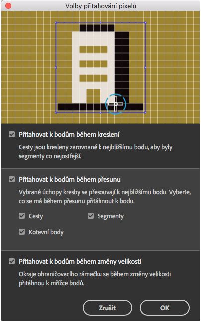 Případně můžete s mřížkou obrazových bodů zarovnat určité segmenty objektu. Dosáhnete toho tak, že pomocí nástroje pro přímý výběr