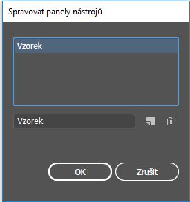 - Zvolte Okno > Panely nástrojů > Nový panel nástrojů.