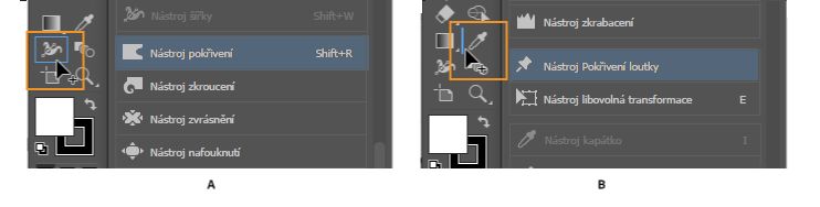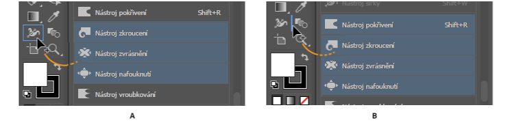 Podržte Alt (Windows) nebo Option (macOS) a poté dalšími kliknutími na nástroj postupně zobrazujte jednotlivé skryté nástroje.