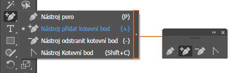 Aplikace Illustrator obsahuje následující typy panelů nástrojů:
