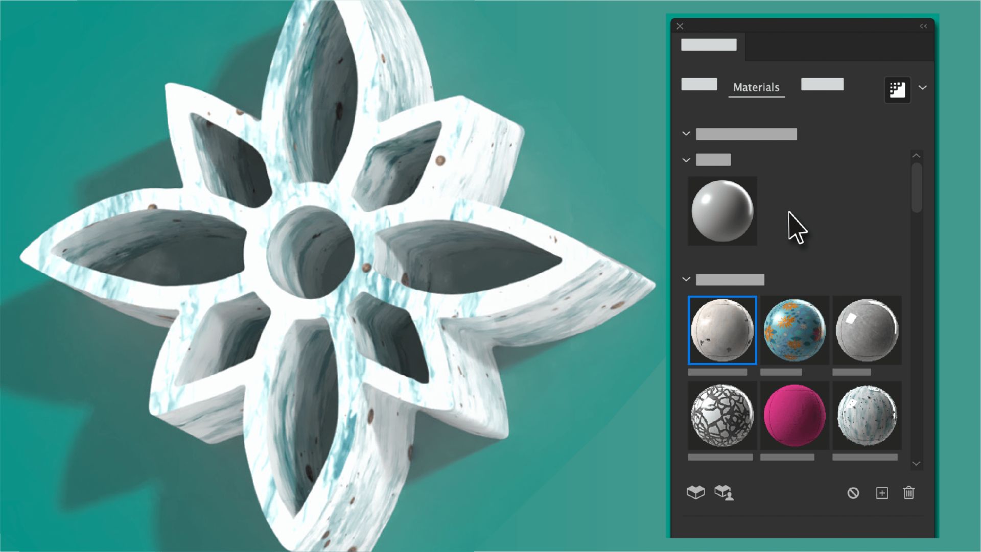 Teď můžete nově snadno používat 3D efekty, jako je Otočení, Obkroužení, Vytlačení, Osvětlení či Stíny u vektorových kreseb a vytvářet tak 3D grafiku. Všechny tyto efekty a materiály Adobe Substance a možnosti vykreslení najdete na jednotném 3D panelu.