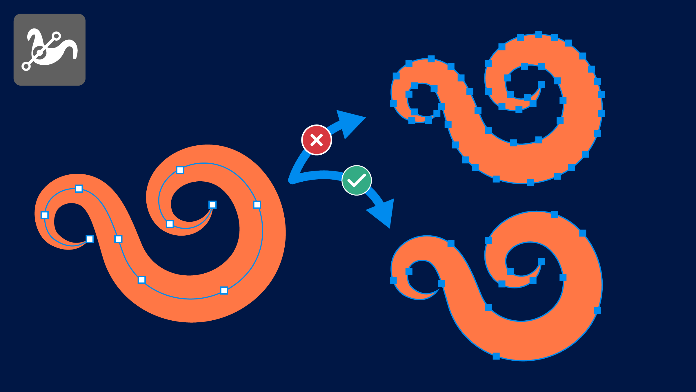 Nyní můžete tahy s variabilní šířkou snadno upravit nebo rozšířit s menším počtem kotevních bodů, protože aplikace Illustrator na tahy použije zjednodušené cesty.
