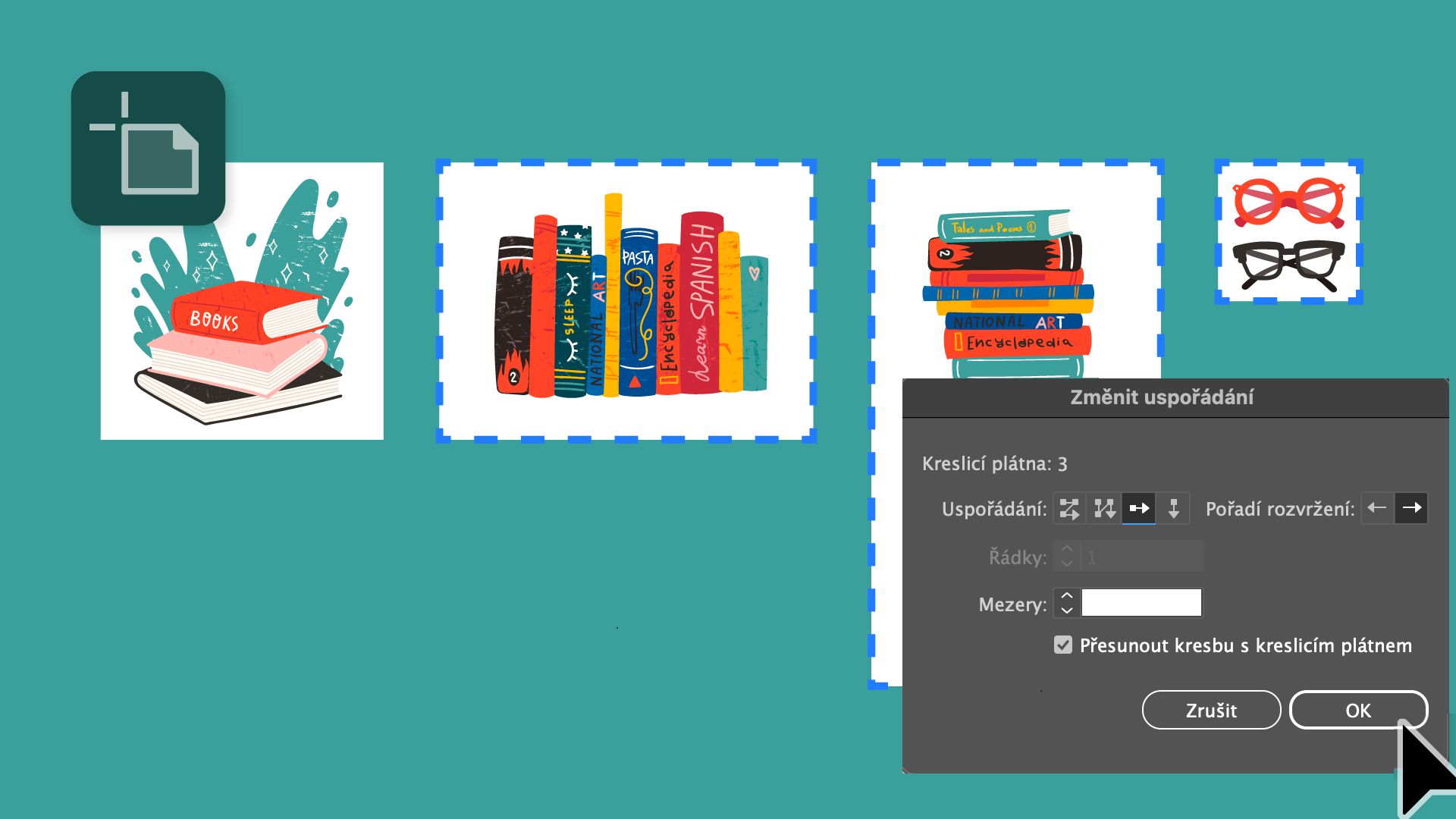 Změna uspořádání vybraných kreslicích pláten kdekoli na plátně