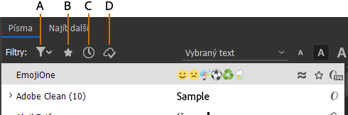 V seznamu písem zobrazí pouze aktivní písma Adobe.