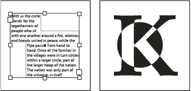 Když vyberete znaky textu v textovém rámečku a převedete je na obrysy, výsledné obrysy se stanou ukotvenými (včleněnými) objekty, které natékají spolu s textem. Protože převedený text již není skutečným písmem, nebudete moci zvýraznit a upravit znaky pomocí textového nástroje. Také je již nemůžete nastavit typografickými volbami. Zkontrolujte typografická nastavení textu před jeho převedením na obrysy a vytvořte si kopii původního textu.