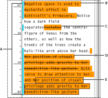 A. Pruhy změn B. Přidaný text C. Odstraněný text D. Přesunutý text (z) E. Přesunutý text (do)