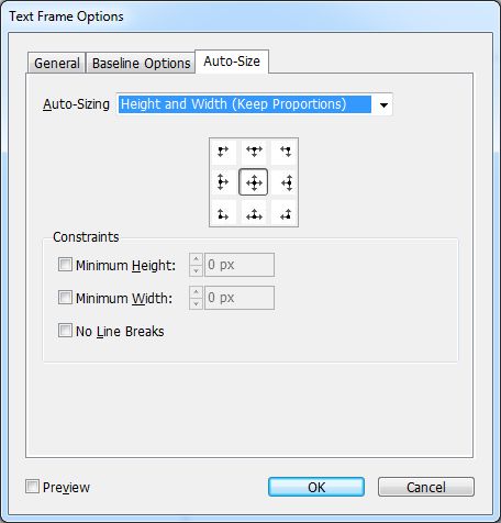 Volby automatické velikosti textových rámečků umožňují nastavit textový rámeček tak, aby se po přidání, odstranění nebo úpravě textu automaticky změnila jeho velikost.