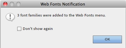 Zobrazí se dialogové okno Oznámení o webových písmech, které přidání nových webových písem potvrdí.
