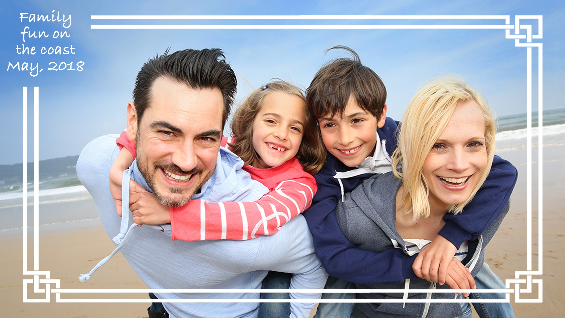 Add stylish borders with text to your special photos and make them stand out in print and on social media. Use the Text and Border Overlay guided edit to give a great new look to your photos that speak your story.