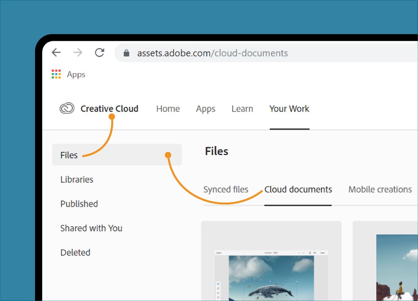 - Cloudové dokumenty a soubory Creative Cloud jsou uloženy v různých umístěních ve vašem účtu Creative Cloud.