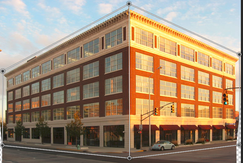 Vyberte Úpravy > Deformace perspektivy, prohlédněte si tip na obrazovce a zavřete ho pro pokračování.