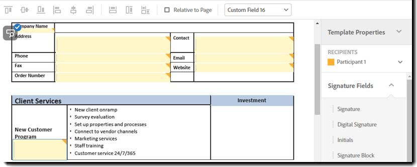 Služba Acrobat Sign nedokáže zjistit, jak se mají jednotlivá pole jmenovat, takže všechna pole mají přiřazený obecný název (např. Vlastní pole 1).