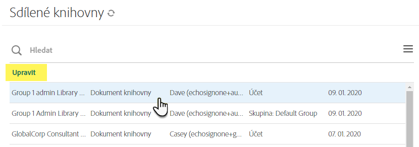 - Správci na úrovni skupiny a účtu mohou šablonu upravit v nabídce Sdílené knihovny.