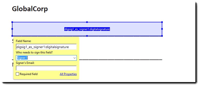 Každý příjemce může mít v rámci jedné dohody přiřazeno maximálně jedno pole digitálního podpisu. Všechna další potřebná pole podpisů mohou být představována standardními typy polí elektronických podpisů.