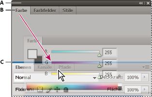 Um die Bedienfelder in einer Gruppe anders anzuordnen, ziehen Sie die Registerkarte eines Bedienfelds an eine andere Stelle in der Gruppe.