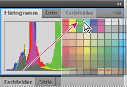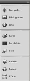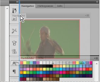 Soll ein Bedienfeld wieder zum Symbol verkleinert werden, klicken Sie auf seine Registerkarte, sein Symbol oder den Doppelpfeil in der Titelleiste des Bedienfelds.