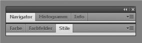 Um eine Bedienfeldgruppe anzudocken, ziehen Sie ihre Titelleiste (die deckend dargestellte, leere Leiste über den Registerkarten) in das Dock.