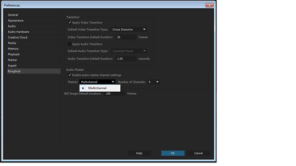 - Wählen Sie unter Windows „Bearbeiten“ > „Voreinstellungen“ > „Rohschnitt“ > „Master: Mehrkanal“ aus.