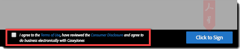 In den meisten Fällen reicht eine indirekte Zustimmung zu diesen Dokumenten aus. Zu diesem Zweck hebt Acrobat Sign Verknüpfungen zu diesen Dokumenten hervor, wenn ein Empfänger im Signaturzyklus auf ein Dokument zugreift.