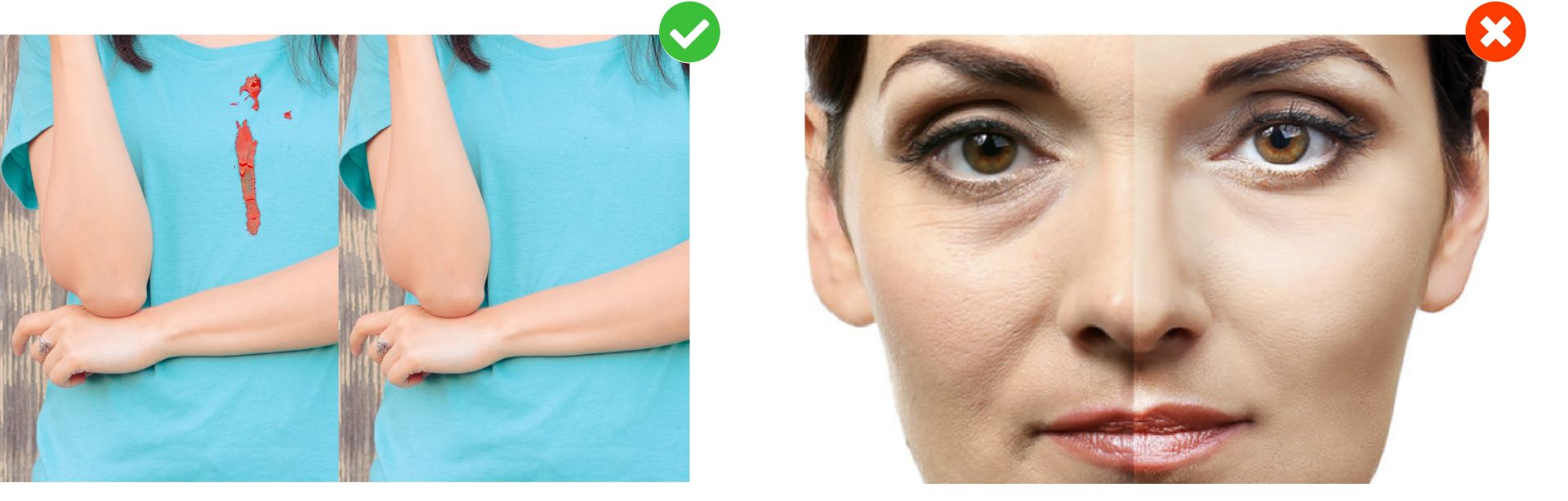 Am besten funktionieren Bilder, die nicht überladen wirken und einen einzigen Fokuspunkt enthalten. Damit ist es einfacher für Lernende, das Konzept der Übung zu verstehen, die Schritte auszuführen und Unterschiede zwischen Vorher und Nachher zu erkennen.