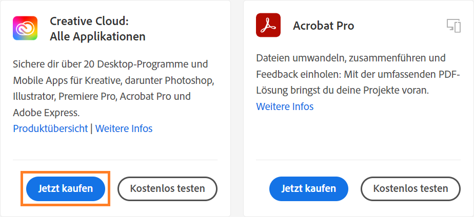 Wenn du direkt bei Adobe kaufst