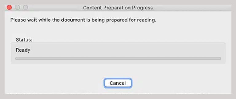 Dialogboksen vises, når Acrobat eller Acrobat Reader forbereder dokumentet til skærmlæsertilgængelighed, når du åbner et PDF-dokument.
