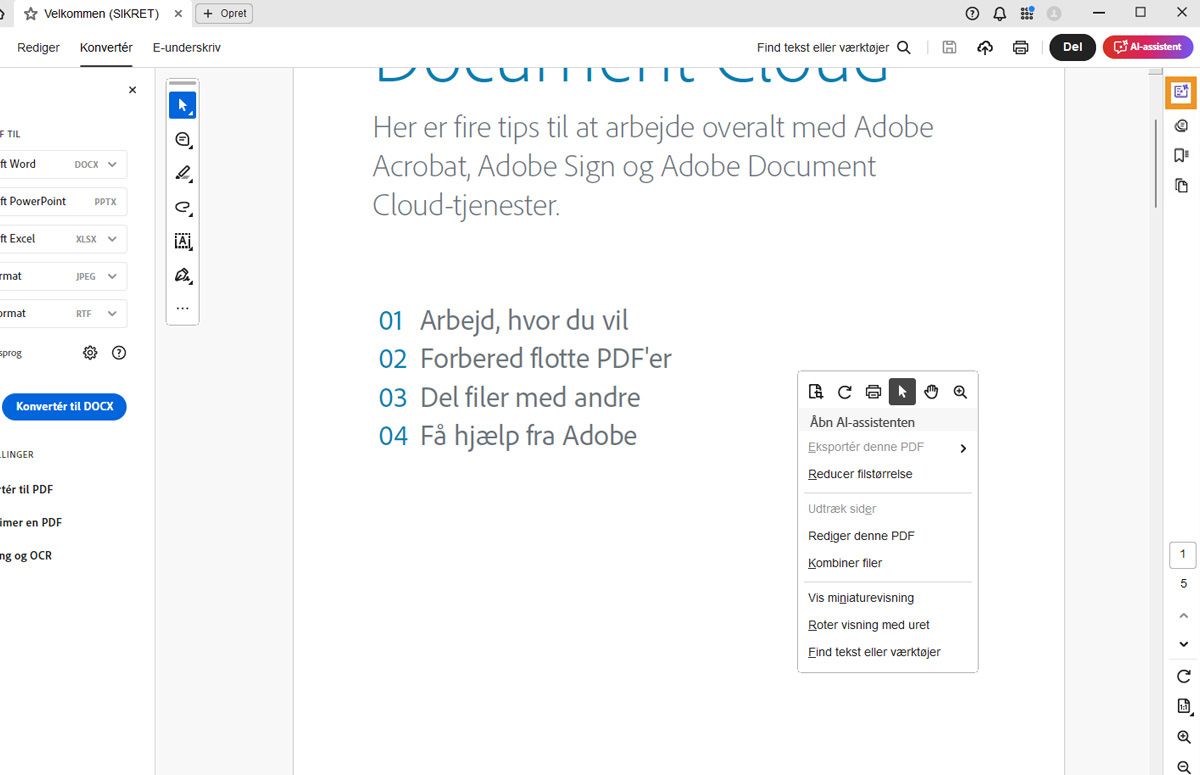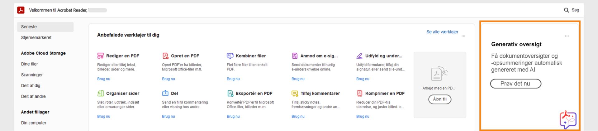 De generative AI-funktioner i Acrobat Reader rulles i faser og er ikke tilgængelige for alle brugere.