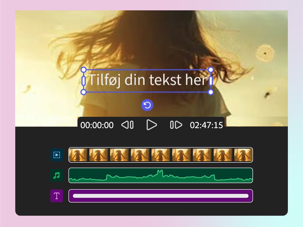 Arranger, juster og udfør redigeringshandlinger på dine videoklip, lyd, billeder og tekst på en visuel tidslinje.