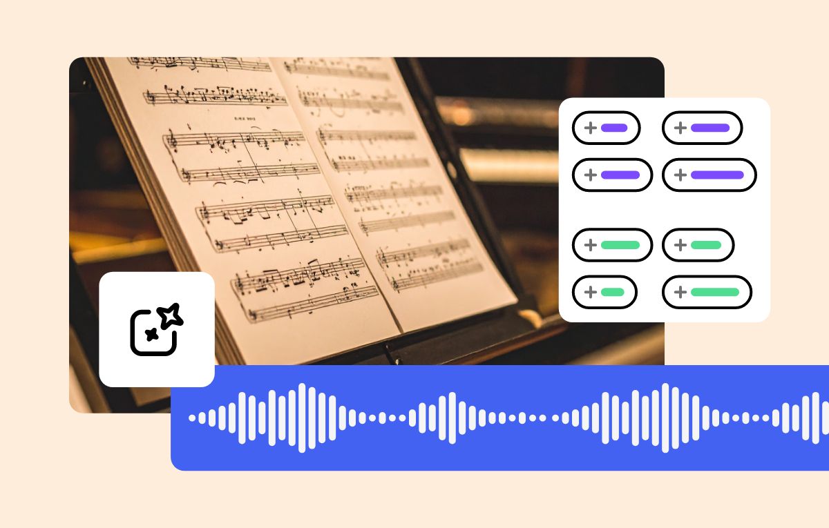 Opret lydspor, der passer perfekt til din videos stemning, følelser, tempo og længde.