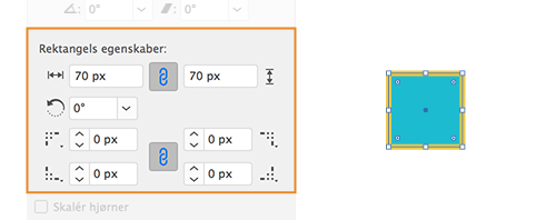 - Bredde/højde: Angiver rektangels højde eller bredde. Hjørnerne bevares, og radierne ændres ikke.