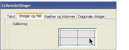 Angiv de ønskede indstillinger for styrke, type, farve, nuance og mellemrumsfarve under Cellestreg. (Se Indstillinger for tabelstreger og fyld).