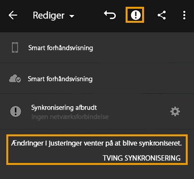 Du kan gennemtvinge synkronisering af de foretagne billedjusteringer via mobilnetværkets dataforbindelse på følgende måde: