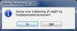 Hold Skift nede, og åbn Photoshop. Under åbningen bliver du spurgt: "Spring over indlæsning af valgfri og tredjepartsekstramoduler?"
