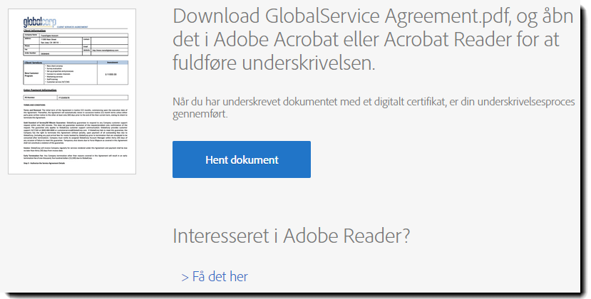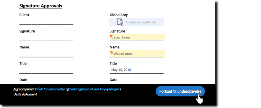 Acrobat Sign-løsningen guider underskriveren gennem processen: