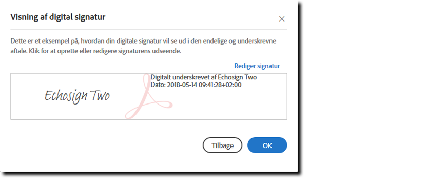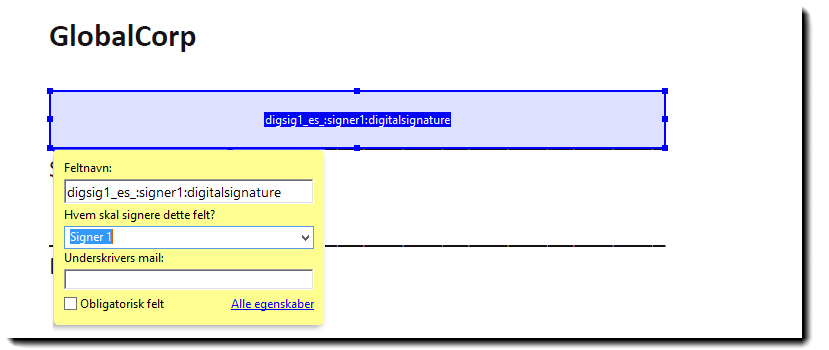 Husk, at bare fordi én underskriver bruger en digital signatur, betyder det ikke, at andre underskrivere skal gøre det samme. Det er fuldt tilladt, at dine interne underskrivere anvender digitale signaturer, mens eksterne underskrivere bruger felttypen til e-signaturer (eller omvendt).