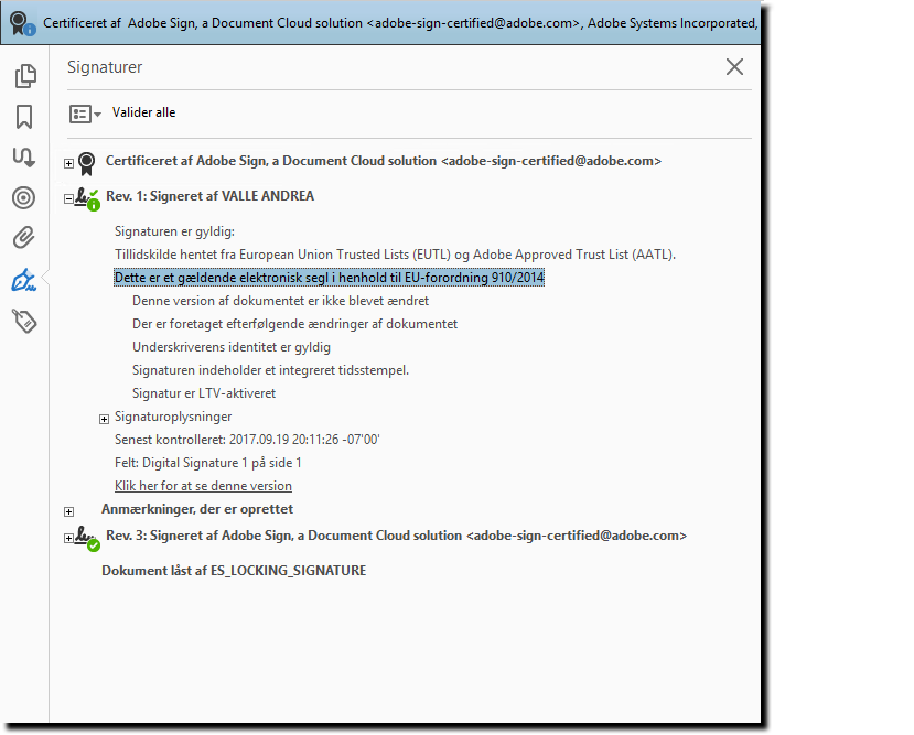 Alle konti på Acrobat Sign EU1-forekomsten i Europa anvender e-IDAS-kompatible kvalificerede tidsstempler som standard. (Hav kendskab til, hvilken forekomst du er på)