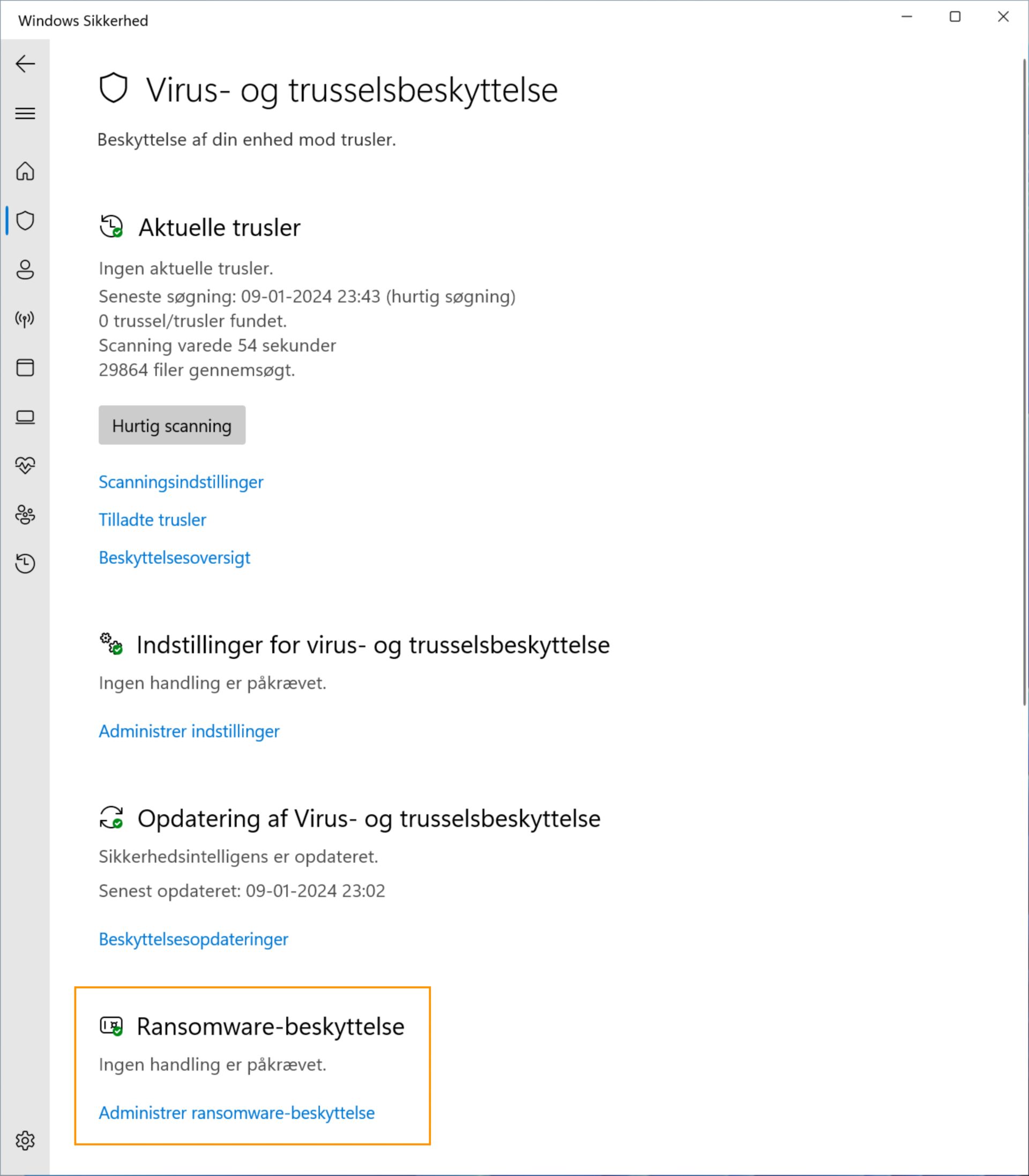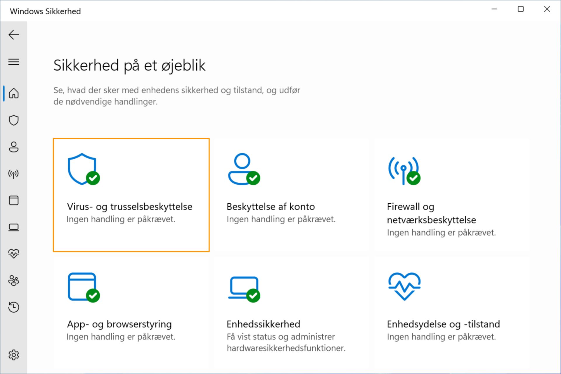 Du kan gøre det ved at klikke på Start > Indstillinger > Opdater & Sikkerheds > Virus- og trusselsbeskyttelse.