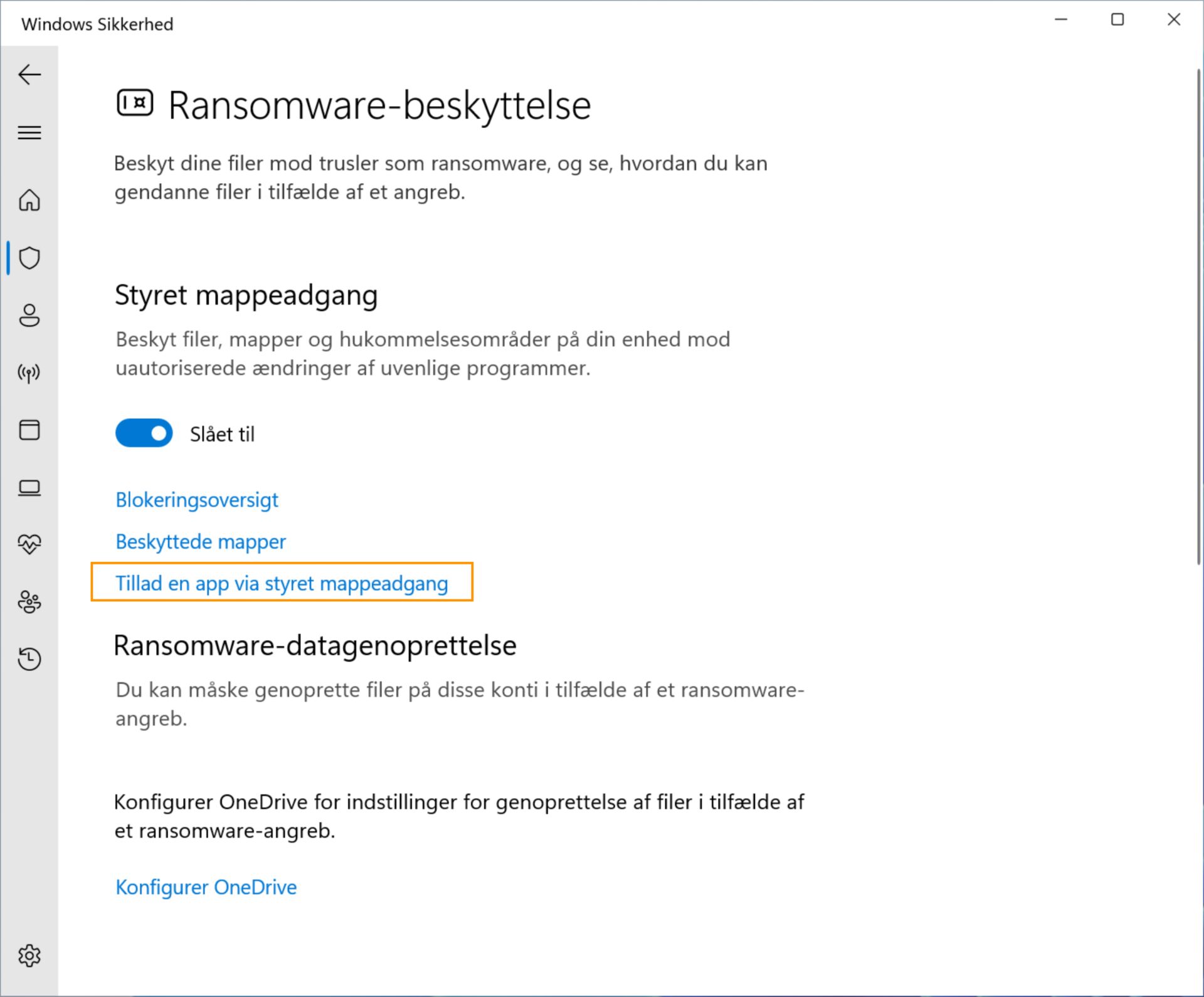 Vælg indstillingen Tillad en app via styret mappeadgang.