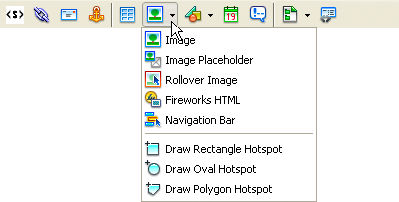 The Dreamweaver Insert bar introduces a new organization for objects. The Insert bar now supports pop-up menus to help organize objects into smaller groups, as shown in the following figure.